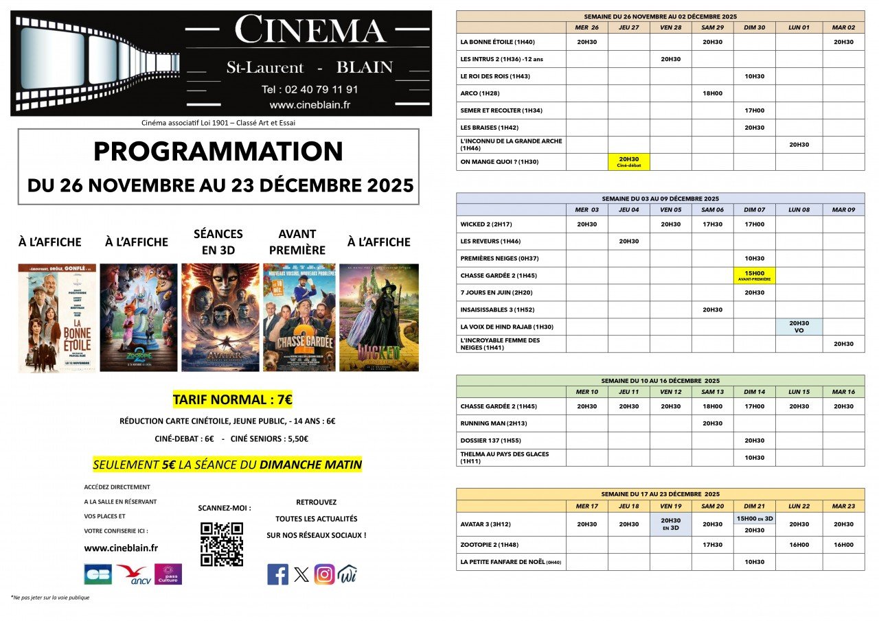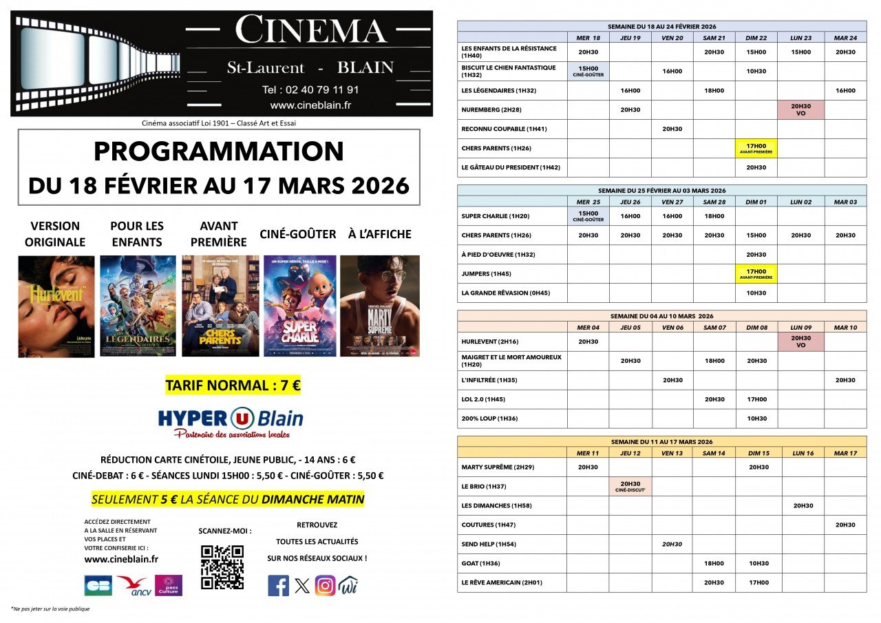 Cinéma Le Saint Laurent, 9 rue du 11 Novembre, 44130 Blain | Mentions légales | Contact | Tel : 02 40 79 11 91